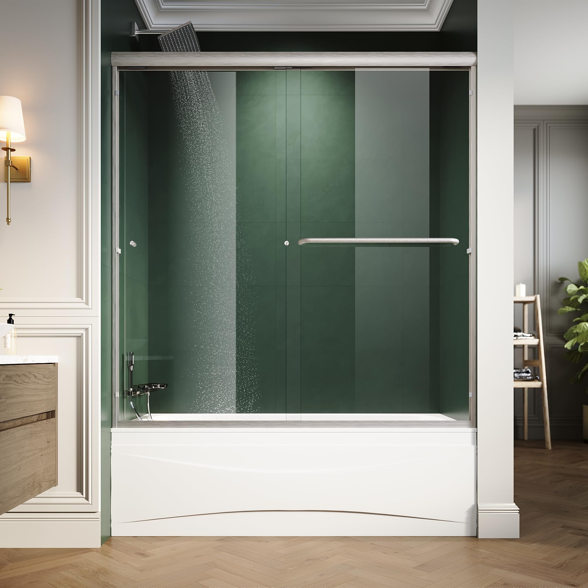 ELEGANT 58.5-60 in. W x 57 3/8 in. H Bypass Sliding Bathtub Glass Doors, Semi-Frameless Shower Door with 1/4 in. Clear Tempered Glass, Brushed Nickel Finish