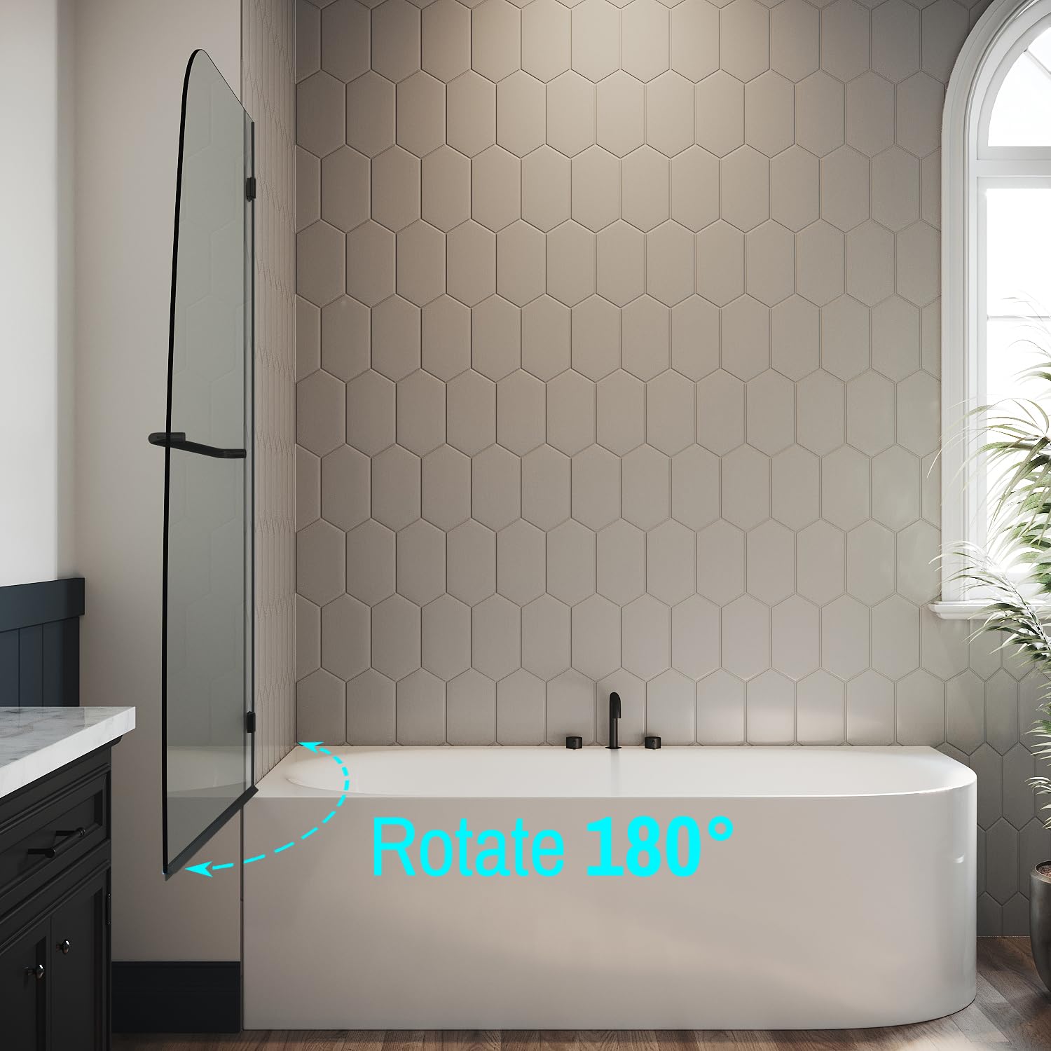 ELEGANT Frameless Bathtub Shower Door 34" W x 58" H, 5/16" Clear Tempered Glass Bathtub Doors, Pivot Tub Screen, Matte Black