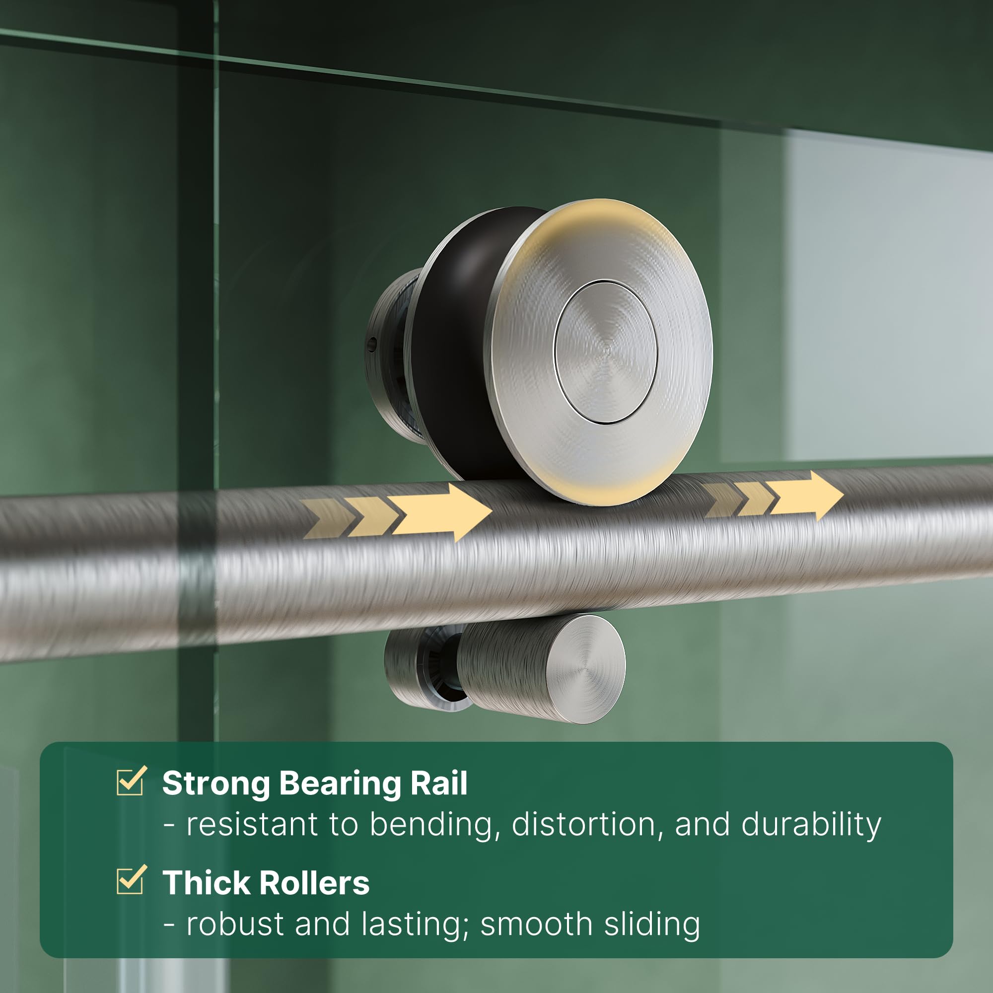 - Smooth and Quiet Operation: Engineered with stainless steel rollers and tracks that glide effortlessly. The precision-engineered wheels ensure no wobbling, no noise, just smooth opening and closing every time. Corrosion-resistant finish stands up to wet bathroom conditions