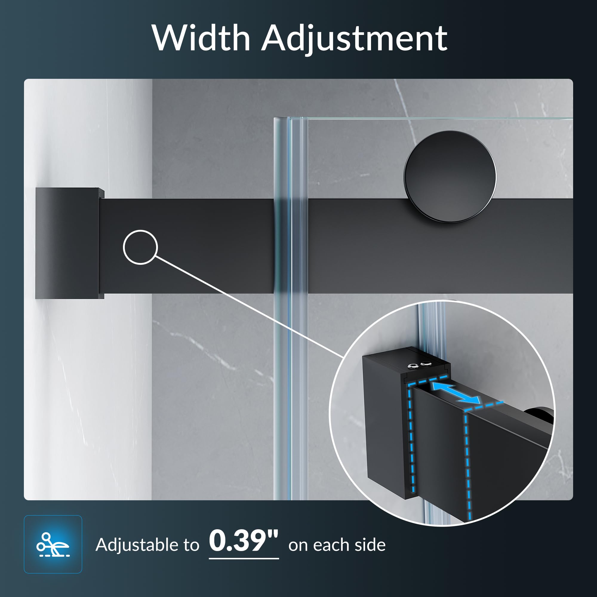 - Width Adjustment: Stainless Steel top guide bar can be trimmed 0.39 inches on each side to adjust the width, cutting too much rail will reduce walk-in space
